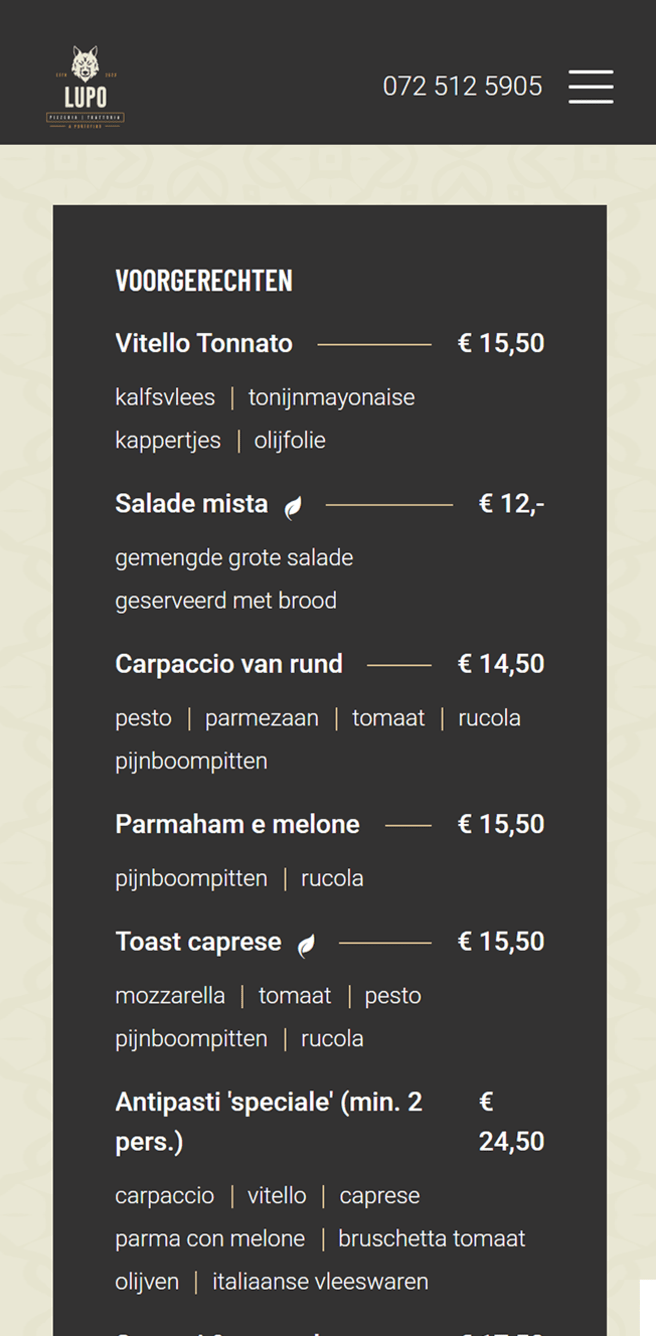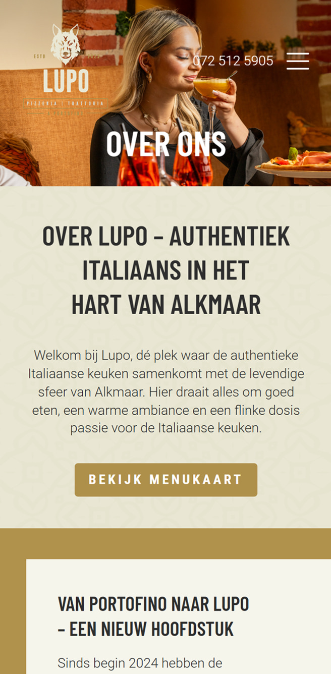 Wolf en Lupo laten in Alkmaar zien hoe horeca op niveau eruitziet. Dat niveau mocht online niet achterblijven. Na de overname van Restaurant Portofino was het tijd voor een digitale upgrade. Webvalue ontwikkelde daarom twee maatwerksites, slim gebouwd op één centraal CMS. Zo is het beheer eenvoudig, terwijl beide locaties dankzij verschillende fotografie en kleurstellingen toch een volledig eigen beleving hebben.