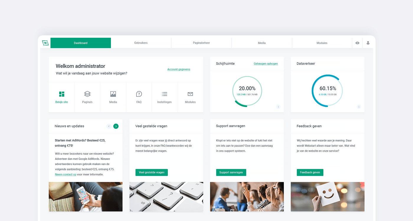 Vrijblijvend kennismakenEenvoudig je website of webshop aanpassen en uitbreiden? Dan kun je bij dit beheerderssysteem je vingers aflikken. In een paar klikken maak je een nieuwe pagina aan, voeg je modules toe en pas je teksten en afbeeldingen aan. Snel, simpel en helemaal zelf. Klinkt goed, toch?